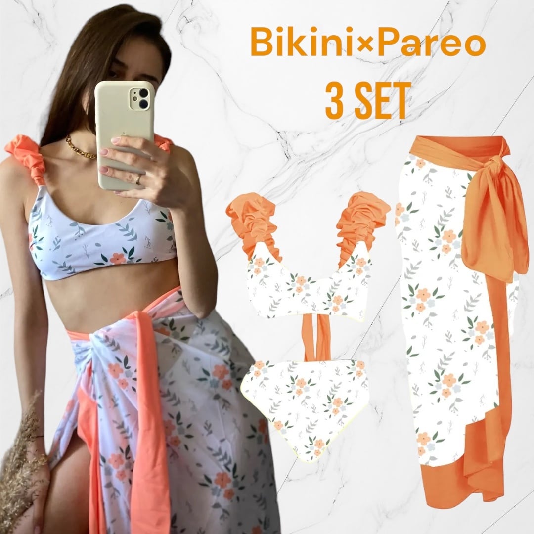 超柔らかい素材のメッシュロングスカートパレオとビキニの3点セット(^ ^)