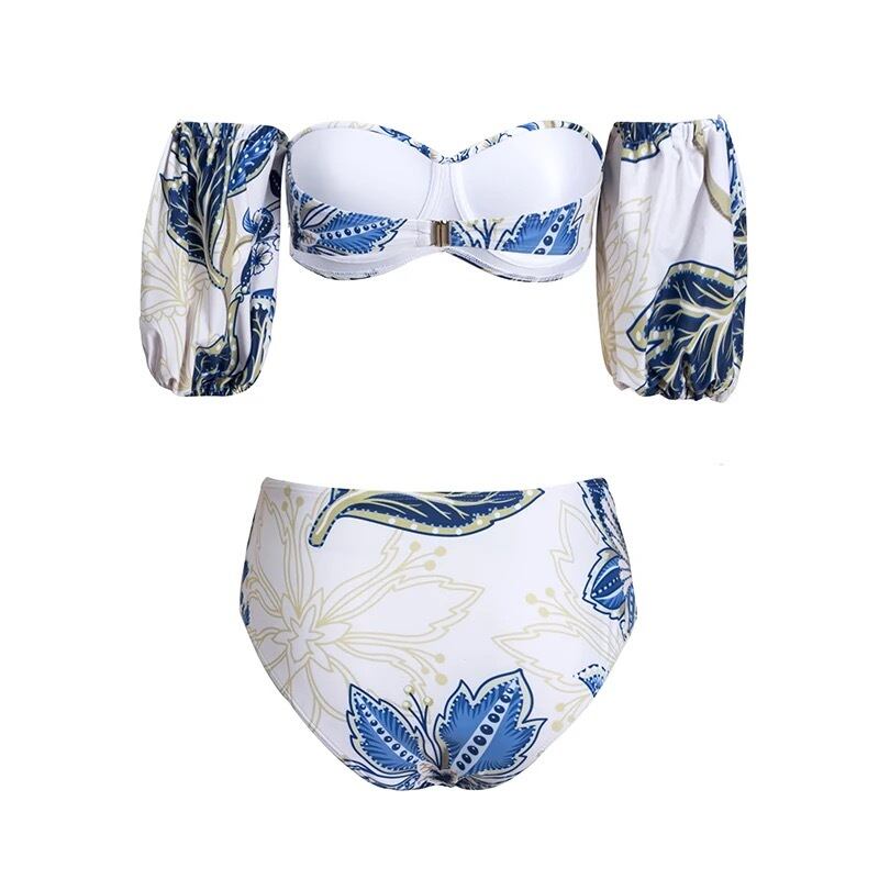 花柄のオフショルダーベアトップビキニセットです。