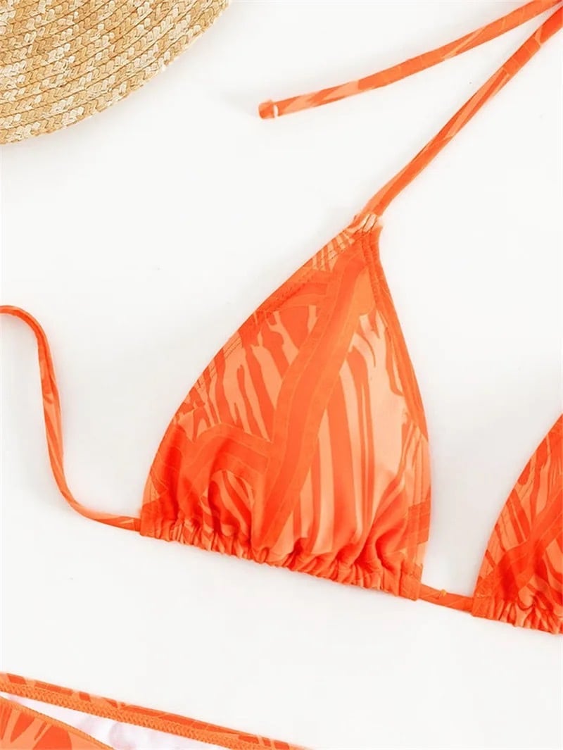 ビキニセット 3点セット ホルターネック ブラジリアン パレオ オレンジ即納